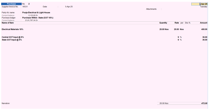 | Purchase Voucher | Purchase Bill | Entry for purchase of goods/services. |