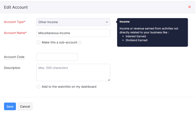 - Cost Centres and Cost Categories (comes as "Tracking Category" in Zoho Books)